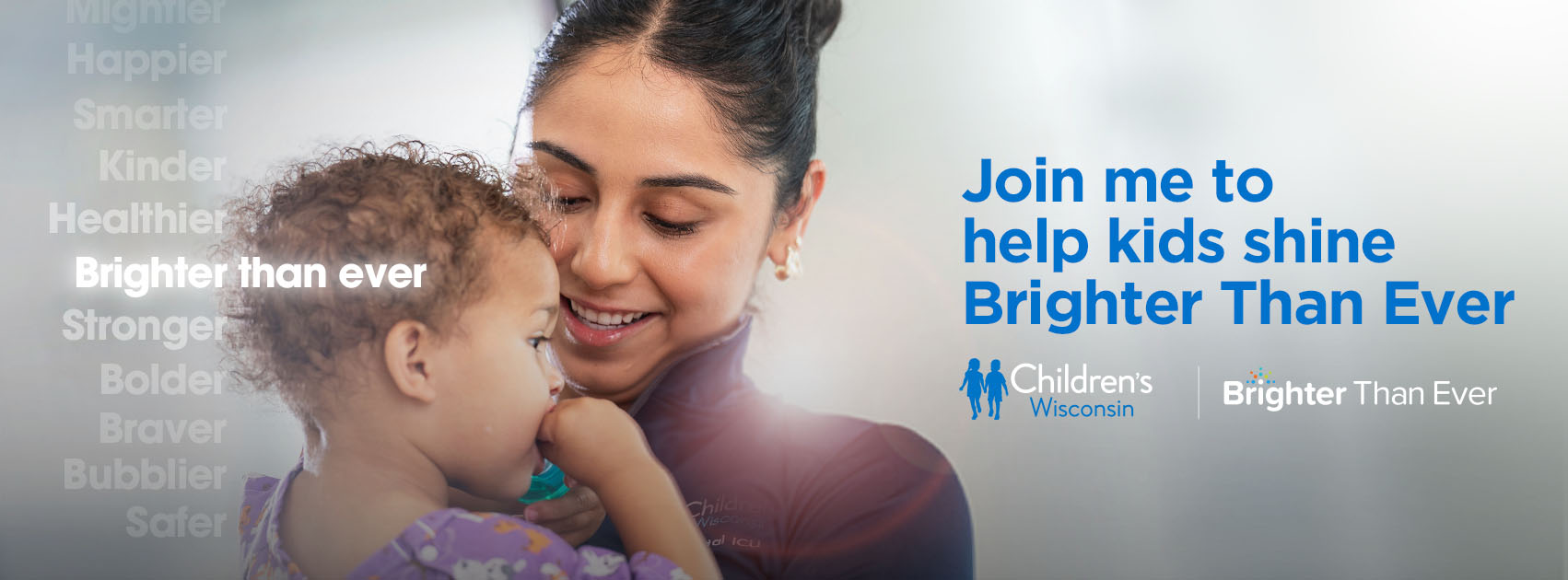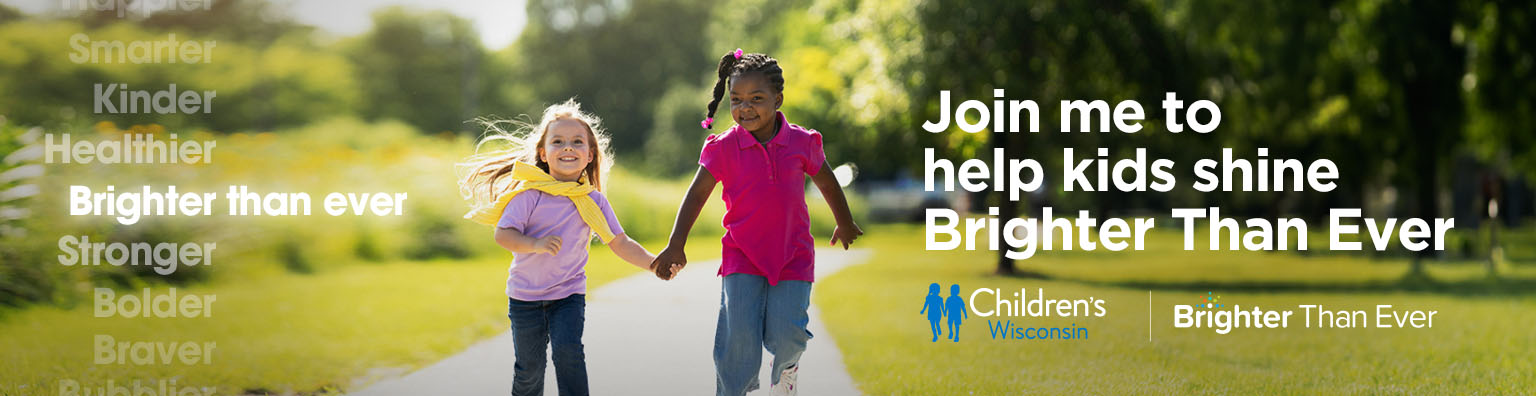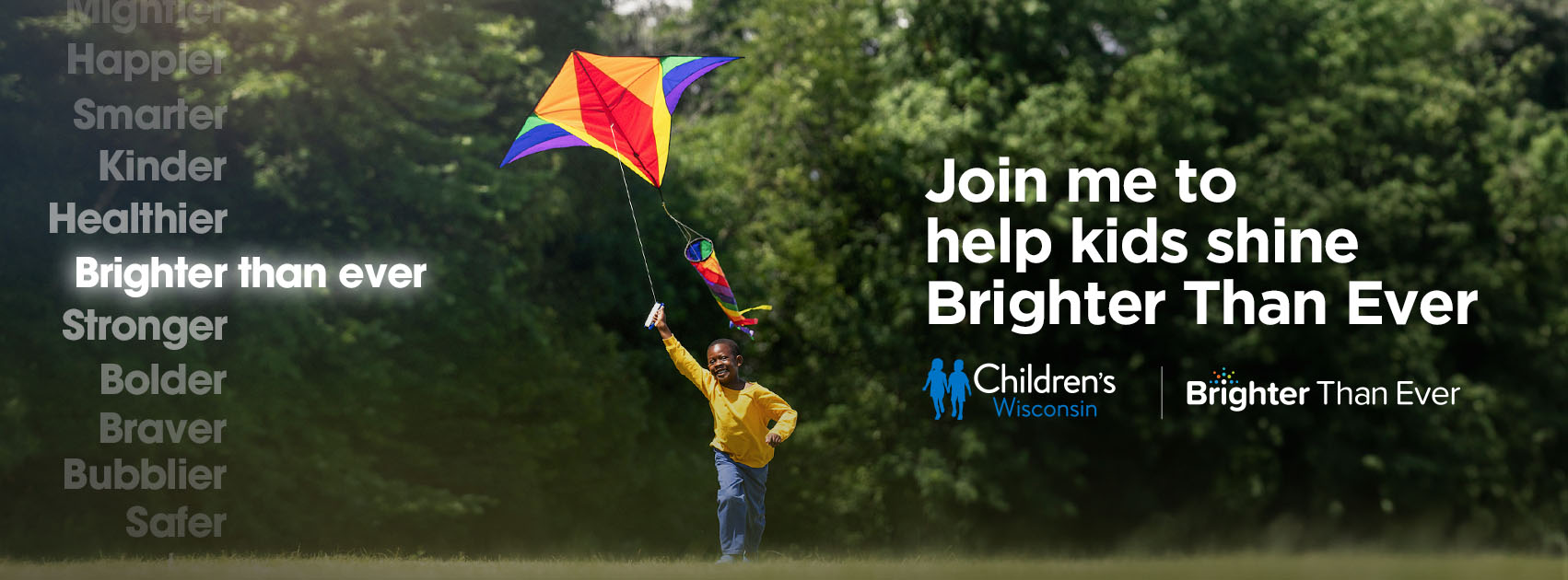 Together — with the below materials that include campaign messaging and tools to help you share your Children’s Wisconsin pride — we have the power to illuminate futures that are Brighter Than Ever for the kids and families of Wisconsin.